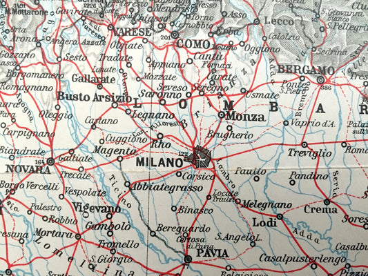 Antique 1937 Northern Italy Map from Muirhead's Blue Guides & Baedekers – Tuscany, Florence, Venice, Pisa, Milan, Bologna, Milan, Turin