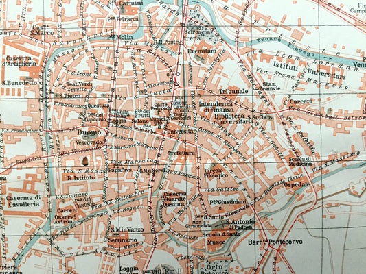 Antique 1937 Padua, Italy Map from Muirhead's Blue Guides & Baedekers – Padova, Veneto Region, Riviera Mussato, Scrovegni Chapel, Santa Rita