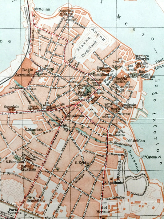 Antique 1937 Mantua, Italy Map from Muirs Blue Guide Baedekers Atlas – Mantova, Lombardy, Gonzaga, Palazzo Te, Ducal Palace, Lago di Mezzo