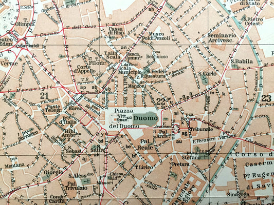 Antique 1937 Milan, Italy Map from Muirhead's Blue Guides & Baedekers – Milano, Lombardy, Castello Sforzesca, Moda, Borgogna, Brera