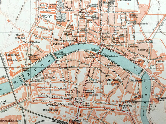 Antique 1937 Florence, Italy Map from Muirhead's Blue Guides & Baedekers – Firenze, Tuscany, Arno, Ponte Vecchio, Uffizi, Fiesole, Sesto