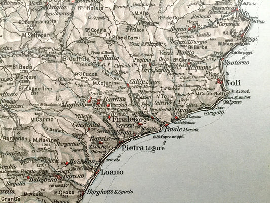 Antique 1937 Savona, Italy Map from Muirhead's Blue Guides & Baedekers – Liguria, Albenga, Noli, Loana, Finale, Calizzano, Spotorno