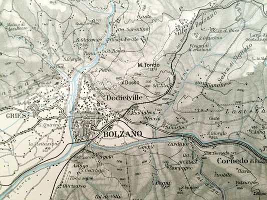 Antique 1937 Bolzano, Italy Map from Muirhead's Blue Guides & Baedekers – South Tyrol, Gries, Dodieiville, Cornedo, Vanga, Bozen, Quirino