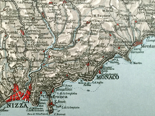 Antique 1937 Nice, France Map from Muirhead's Blue Guides & Baedekers – Monaco, Nizza, Bordighera, Italy, Imperai, French Riviera