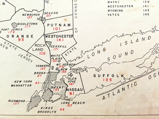 Antique 1941 New York County Map from WP Munger's Historical Atlas of New York State – Albany, Manhattan, Long Island, Adirondacks, NYC NY