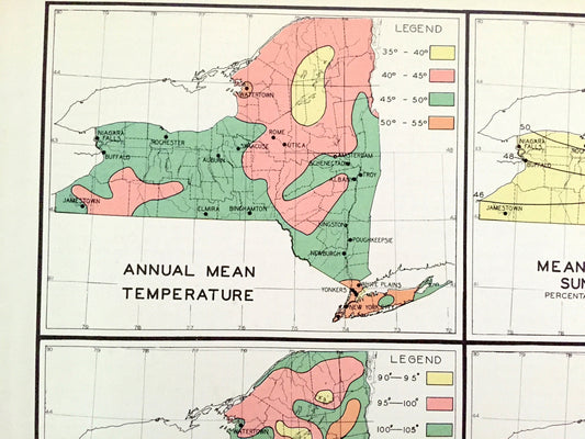 Antique 1941 New York Climate Map from WP Munger's Historical Atlas of New York State – Manhattan, Long Island, Adirondacks, Albany, NYC NY