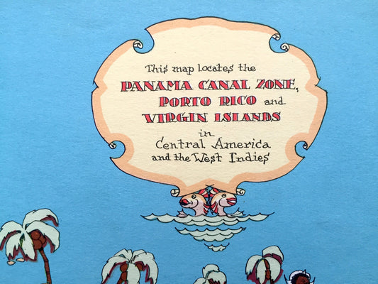 Antique 1935 West Indies Map from Our Gay Geography by Ruth Taylor – Panama, Puerto Rico, Jamaica Cuba Key West Antilles Virgin Caribbean FL