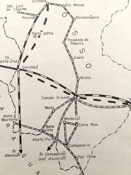 Antique Amazonas-Matto Grosso Region Airline Map 1943 – Formerly Restricted US Government – Goyaz, São Paulo, Paraguay, Pará, South America