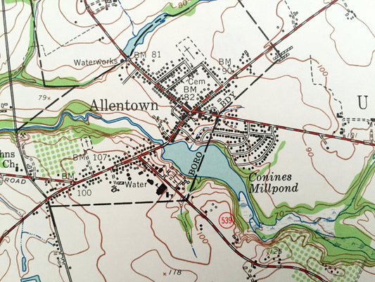 Antique Allentown, New Jersey 1957 US Geological Survey Topographic Map – Washington, East Windsor, Millstone, Upper Freehold, Hamilton, NJ