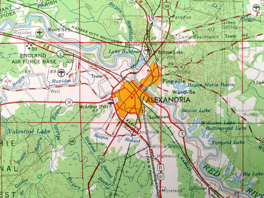 Antique Alexandria, Louisiana 1953 US Geological Survey Topographic Map – Pineville, Marksville, Lecompte, Natchitoches, Winnfield Colfax LA