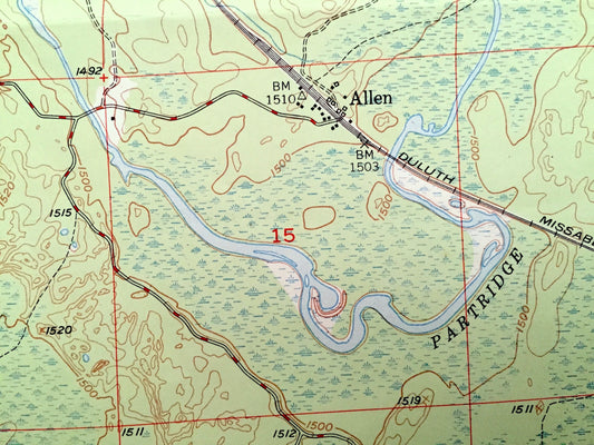 Antique Allen, Minnesota 1950 US Geological Survey Topographic Map - St Louis County, Mesaba, Argo, Bassett, Wyman, Spring, Ridge, MN