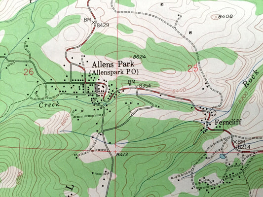Antique Allens Park, Colorado 1957 US Geological Survey Topographic Map – Meeker Park, Roosevelt National Forest, Rocky Mountain Park, CO