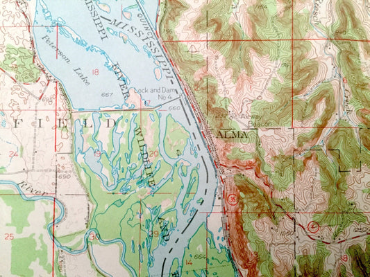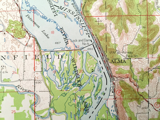 Antique Alma, Wisconsin 1950 US Geological Survey Topographic Map – Buffalo County, Modena, Nelson, Belvidere, WI, Wabasha County, Watopa MN