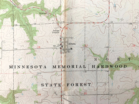Antique Altura, Minnesota 1972 US Geological Survey Topographic Map – Winona County, Mount Vernon, Elba, Memorial Hardwood State Forest, MN