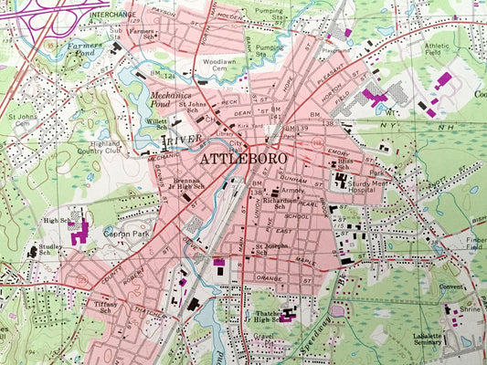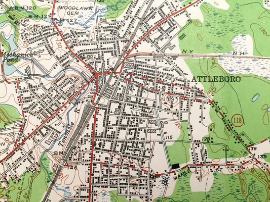 Antique Attleboro, Massachusetts 1964 US Geological Survey Topographic Map – Norfolk, Bristol County, MA, Providence County, Pawtucket, RI