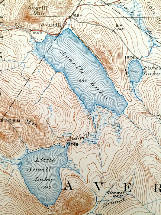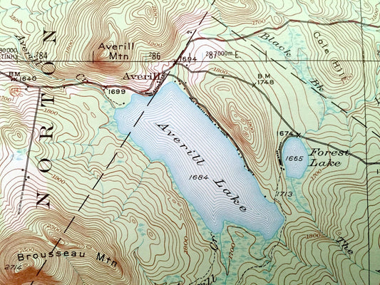 Antique Averill, Vermont 1929 US Geological Survey Topographic Map – Coos, Essex County, Lemington, Stratford, Columbia, New Hampshire VT NH