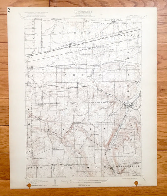 Antique Attica, New York 1905 US Geological Survey Topographic Map - Alexander, Batavia, Pembroke, Newstead, Alden, Marilla, Wales, Sheldon