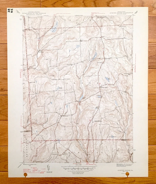 Antique Auburn Center, Pennsylvania 1947 US Geological Survey Topographic Map - Rush, Braintrim, Meshoppen, Washington, Tuscarora, Retta