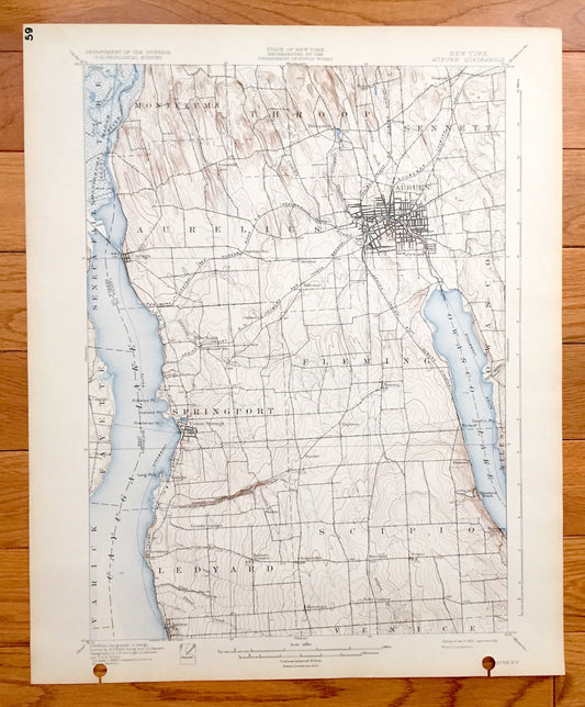 Antique Auburn, New York 1902 US Geological Survey Topographic Map – Aurelius, Fleming, Springport, Montezuma, Throop, Sennett, Ledyard, NY