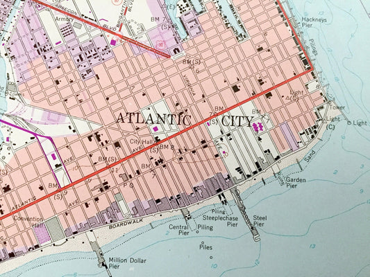 Antique Atlantic City, New Jersey 1952 US Geological Survey Topographic Map — Atlantic County, Margate City, Ventnor City, Heights, Shore NJ