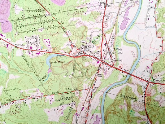 Antique Avon, Connecticut 1957 US Geological Survey Topographic Map – Hartford County, Simsbury, Bloomfield, Farmington, West Hartford, CT