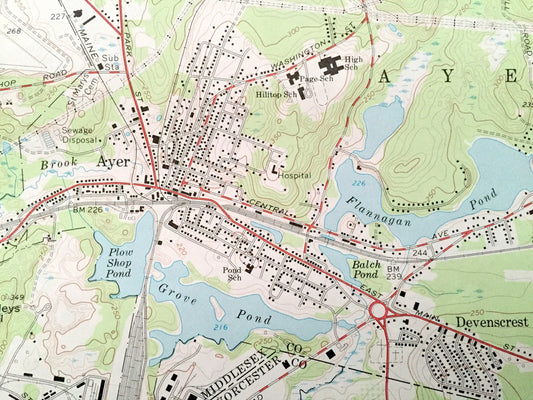 Antique Ayer, Massachusetts 1966 US Geological Survey Topographic Map – Middlesex, Worcester County, Groton, Harvard, Boxborough, Shirley MA
