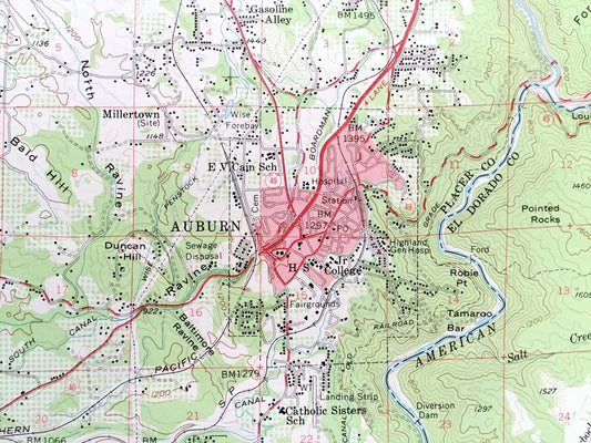 Antique Auburn, California 1954 US Geological Survey Topographic Map – Rocklin, Loomis, Penryn, Newcastle, Placer, El Dorado County, CA