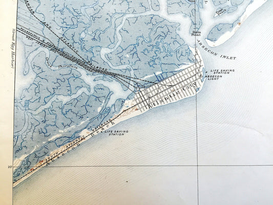 Antique Atlantic City, New Jersey 1894 US Geological Survey Topographic Map — Margate City, Ventnor, Brigantine, Absecon, Galloway County NJ