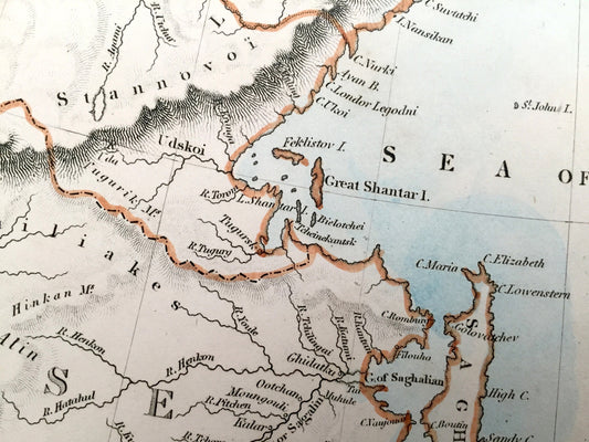 Antique 1845 Russia Map from SDUK Atlas – Eastern Siberia, China, Alaska, Tartar, Kamtchatka, Bering Strait, Okhotsk, Iakoutsk, Arctic Ocean