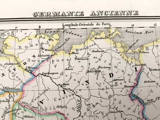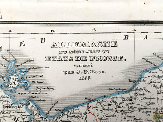 Antique 1835 Ancient Germany Map from JG Heck's Atlas Géographique, Astronomique et Historique – Hamburg, Bremen, Hanover, Frisian, Denmark