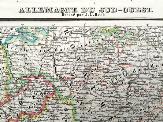Antique 1835 Ancient Germany Map from JG Heck's Atlas Géographique, Astronomique et Historique – Munich, Bamberg, Strasbourg, Pilsen, Coburg