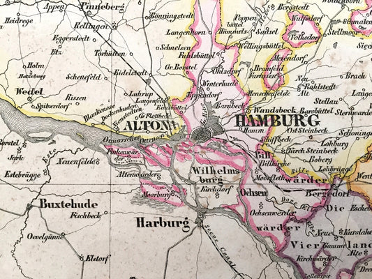 Antique 1855 Holstein, Lauenburg, Hamburg, Lübeck Map from Sohr Berghaus Atlas by Carl Flemming – Germany, Altona, Stade, Kiel, Bad Oldesloe