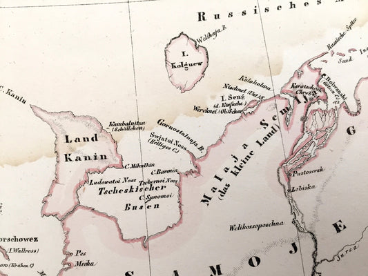 Antique 1855 Arctic Russia Map from Sohr Berghaus Atlas by Carl Flemming – Nizhny Novgorod, Perm, Kazan, Yekaterinburg, Arsk, Ural Mountains