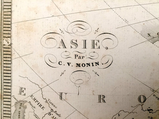 Antique 1838 Asia Map from Atlas Classique Ancienne by CV Monin – Turkey, Middle East, China, Japan, India, Tibet, Russia, Korea, Pakistan