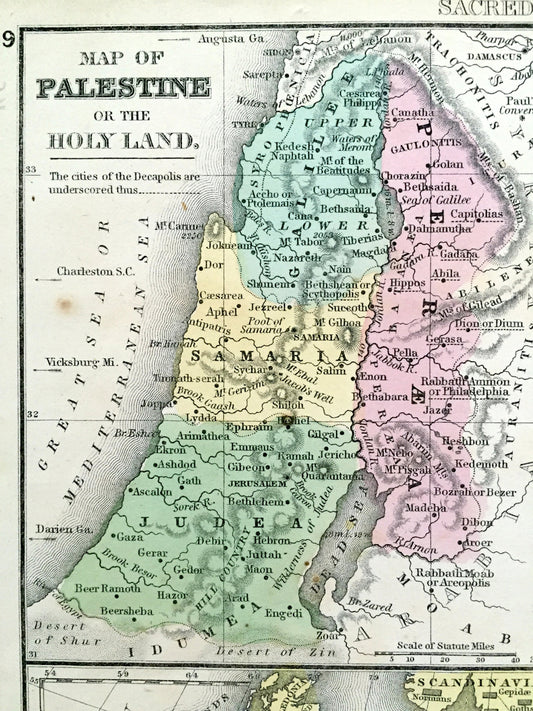 Antique 1844 Palestine, Jerusalem & Barbarians of Rome Map from S. Augustus Mitchell Ancient Atlas – Holy Land, Europe, Bethlehem, Galilee