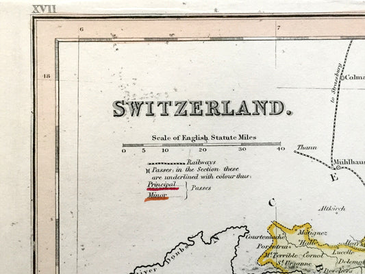 Antique 1850 Switzerland Map by John Dower, Ward & Lock – Germany, Liechtenstein, Zurich, Lucerne, Lake Geneva, Alps, Mountains Active