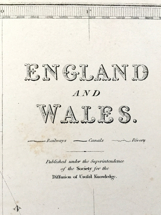 Antique 1844 England & Wales Map from SDUK Atlas – United Kingdom, Great Britain, British Isles, Scotland, London, Manchester, Liverpool, UK