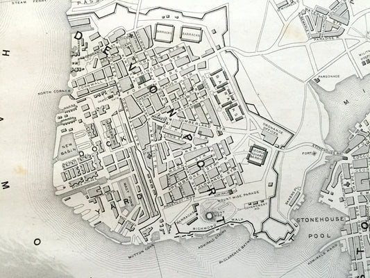 Antique 1851 Plymouth, England Map by John Rapkin from Tallis Atlas – Exeter, Devonport, Stonehouse, Devon County, Great Britain, UK