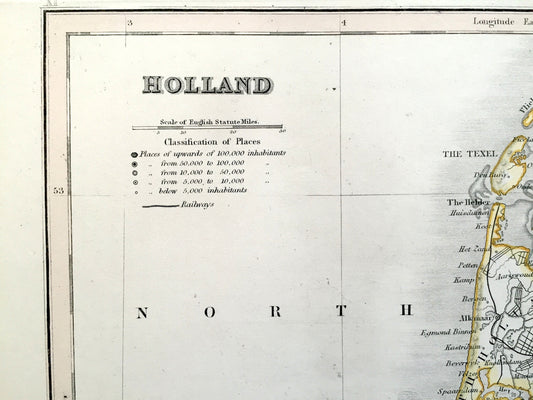 Antique 1850 Holland and Belgium Map by John Dower, Ward & Lock – Netherlands, France, Germany, Amsterdam, Brussels, Ghent, Hague, Texel