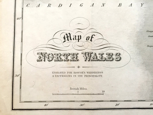Antique 1836 Map of North Wales by John Bartholomew – United Kingdom, Cymru, Snowdonia, Anglesey, Gwynedd, Wrexham, Conwy, Powys, Rhyl, UK