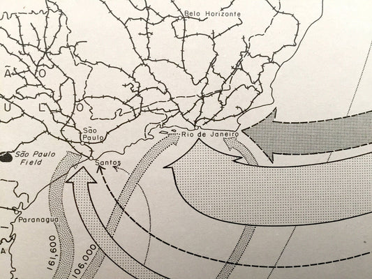 Antique Brazil 1943 Domestic Movements Map – US Board of Economic Warfare – Sao Paulo, Parana, Sao Paulo, Salvador, Rio de Janeiro