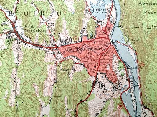 Antique Brattleboro, Vermont 1954 US Geological Survey Topograph Map – Dummerston, Vernon, Newfane, Guilford, Windham, New Hampshire, VT NH