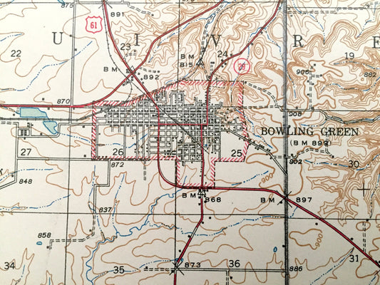Antique Bowling Green, Missouri 1937 US Geological Survey Topographic Map – Pike County, Louisiana, Peno, Buffalo, Calumet, Ahsley Cuivre MO