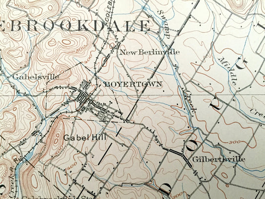 Antique Boyertown, Pennsylvania 1902 US Geological Survey Topographic Map – Berks County, Rockland, Limerick, Hereford, Pottstown, Amity, PA