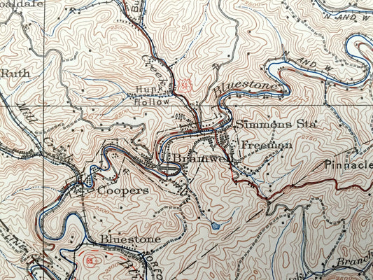 Antique Bramwell, West Virginia 1924 US Geological Survey Topographic Map – Mercer County, Northfork, Bluestone, Rolfe, McDowell, Clear Fork