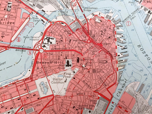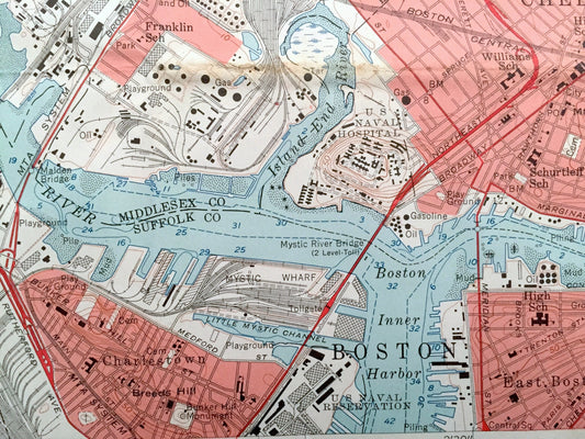 Antique Boston, Massachusetts 1956 US Geological Survey Topographic Map – Revere, Chelsea, Cambridge, Malden Woburn Saugus Suffolk County MA