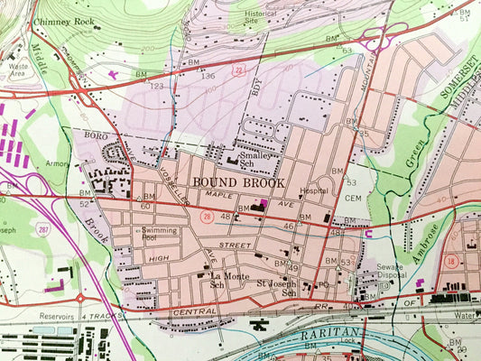Antique Bound Brook, New Jersey 1955 US Geological Survey Topographic Map – Somerset, Middlesex County, Warren, Hillsborough, Franklin, NJ