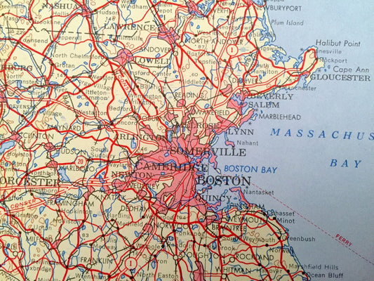 Antique Boston, Massachusetts 1969 US Geological Survey Topographic Map – Cambridge, Somerville, Worcester, Providence, Cape Cod Newport MA