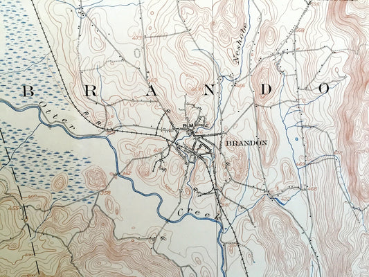 Antique Brandon, Vermont 1902 US Geological Survey Topographic Map – Middlebury, Salisbury, Sudbury, Goshen, Rutland County, Lake Dunmore VT