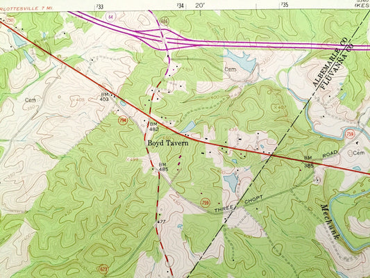 Antique Boyd Tavern, Virginia 1967 US Geological Survey Topographic Map – Albemarle, Fluvanna County, Lake Monticello, Union Mills, VA